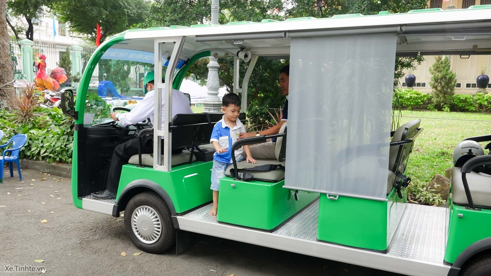Theo thông tin trên xe điện thì chiếc xe này do một doanh nghiệp Việt Nam lắp ráp trong nước. Xe có thiết kế tương tự các xe điện sử dụng ở các khu du lịch hay sân golf.